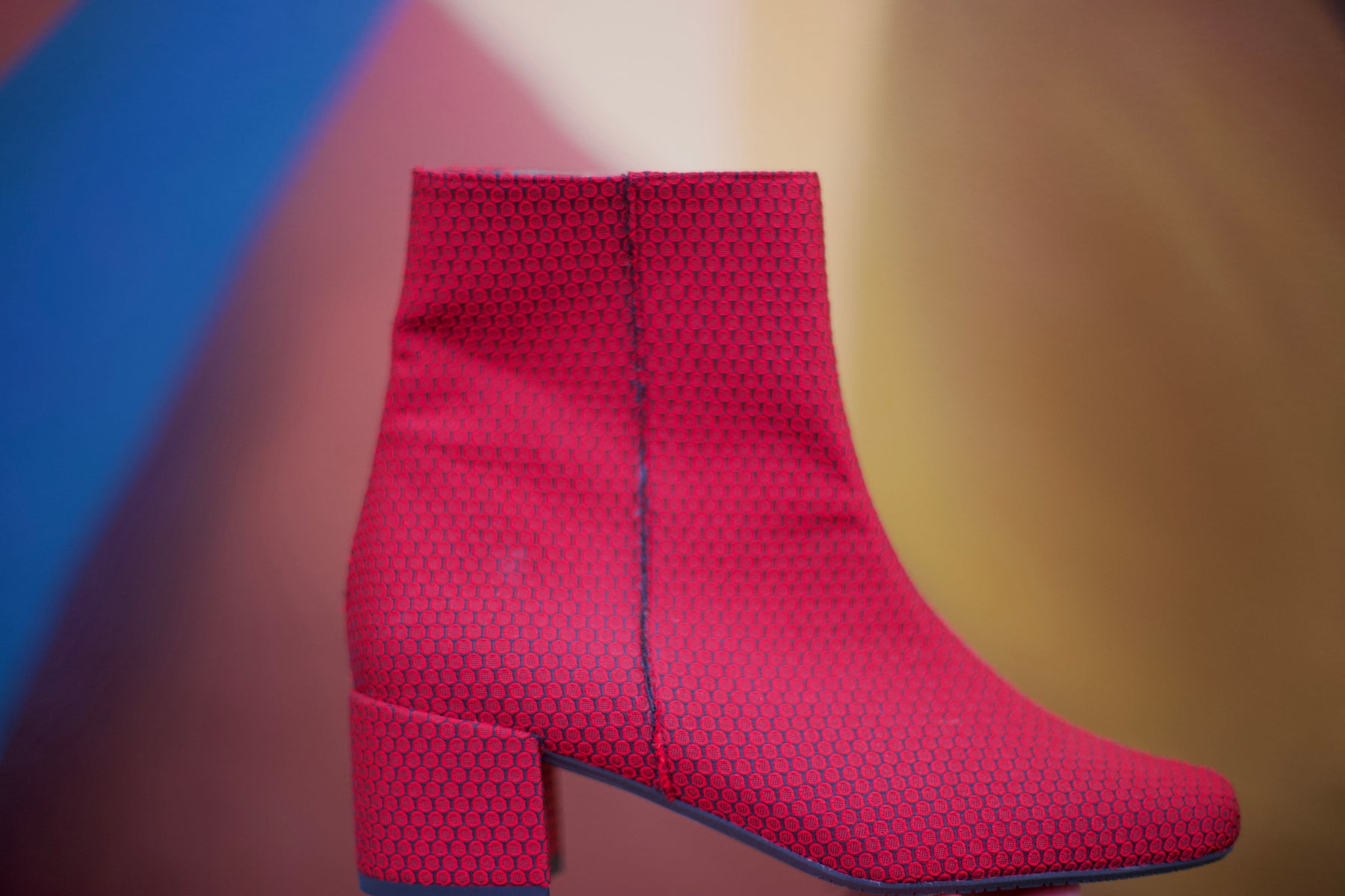 'Jacqui' vegan ankle boot by Zette Shoes - red textile